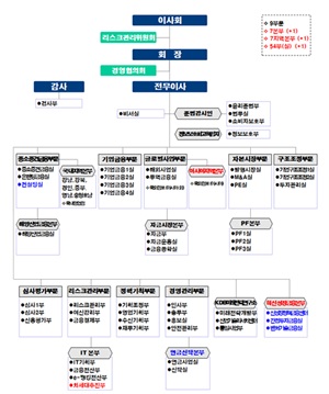 기업은행의 조직도를 살펴보면 최고의 ceo밑에 기업고객본부, 개인고객본부 , 카드사업 본부, ib본부 등 총 11개의 사업본부와 하나의 사업단 그리고 1개의 연구소로 이루어져있는 사업부제 조직형태를 띄고 있다.